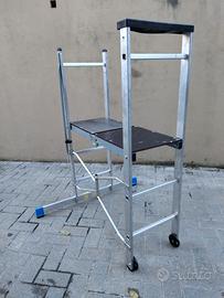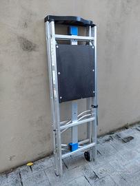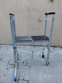 -Vendo trabattello richiudibile in alluminio,con stabilizzatore. Lo stato di conservazione è ottimo. Usato solo una volta x imbiancare. Sono presenti piccoli segni del suo utilizzo. Misure: 104x45. H tot 156. H pedana 88. Larghezza barra stabilizzatrice 121cm. Prezzo: 130€