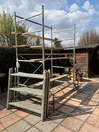 Trabbattello misure Altezza 7,20 Base 1,20 x 2,20 Base con ruote e stabilizzatori Completo ottime condizioni Comprese 6 tavole ripiani