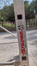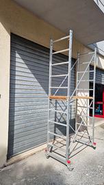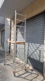 Trabaltello in alluminio con ruote marchio "Faraone" in ottime condizioni quasi pari al nuovo, utilizzato solo per pulizia e lavaggio vetrate. Le misure alla base (quindi ruote comprese) sono 75 x 140. Composto da due castelli separati sovrapponibili, l'altezza massima raggiungibile all'ultimo piolo è di 2,90mt. Completamente smontabile per facilitare il trasporto. Completo anche di staffe laterali di protezione per la parte superiore che nella foto non sono state montate ma solo poggiate di fronte a vista.