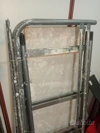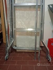 Trabattello 120 X 38 (piano d'appoggio) altezza del ripiano più alto 110. Usato pochissimo e in ottime condizioni, solo sporco di schizzi di pittura murale.