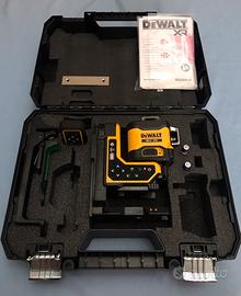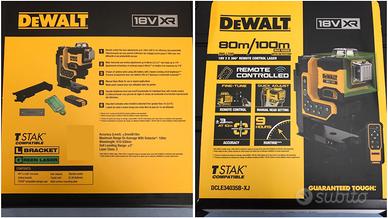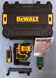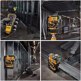 Vendo nuovissimo tracciatore laser professionale a linee verdi DEWALT 18V XR 3 x 360° modello DCLE34035B-XJ dotato di controllo remoto, progettato per offrire un altissima precisione ed efficienza nelle attività di livellamento e allineamento.
