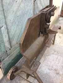 Trancia per ferro su supporto con ruote, vintage ma in buone condizioni. molto robusta e pesante.