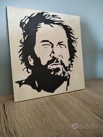 Imagine iconica di Bud spancer con tecnica di traforo fatto a mano su compensato di betulla spessore 11 mm. larghezza 27,5 cm. altezza 30 cm.