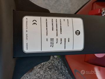 Transpallet BT modello P20/8 lunghezza forche 1200 larghezza cm 65 ideale per bilz portata kg. 2000 batteria buona, ruote nuove usato ma in buono stato