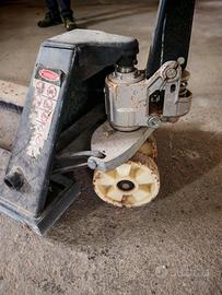 Carrello transpallet manuale, robusto e perfettamente funzionante, come visibile nella foto.