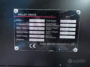 Transpallet elettrico con batteria Litio portata 2000 kg. - adatto ad
