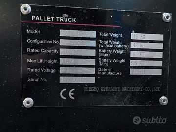 Transpallet elettrico con batteria Litio portata 1500 kg. - adatto ad
