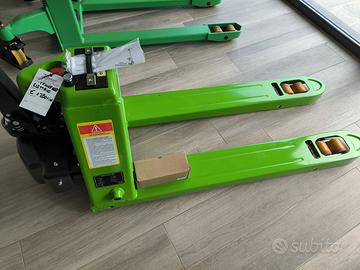 Transpallet elettrico portata 2000 kg con movimento e sollevamento totalmente elettrici.