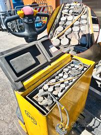 transpallet elettrico uomo a terra usato, si tratta di un transpallet di marca OM utilizzato per il trasporto e la movimentazione delle merci nei magazzini. non funziona perciò lo vendiamo a 500,00€ iva e trasporto esclusi. dimensioni: 164X70cm h123cm, lunghezza forche 115cm, spazio forche 24cm