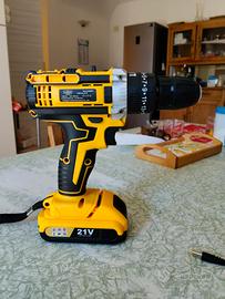 Vendo Trapano Avvitatore a batteria da 21 Vcc Senza fili nuovo e mai usato marca yunzi modello DZ001 completo di Alimentazione e set chiavi a brugole e punte da ferro. Causa inutilizzo lo vendo. La batteria è al litio.