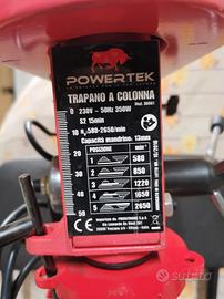 Vendo trapano a colonna da banco Powerteck 350watt con mandrino fino a 13mm, compreso di morsa.