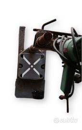 Funzione:Permette di montare un comune trapano elettrico portatile, bloccandolo in posizione verticale, e di azionarlo tramite un sistema a leva che ne garantisce la stabilità e la precisione durante la foratura.