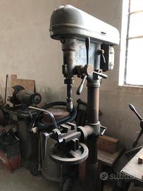 Vendo trapano a colonna Audax mod. A13/4 perfettamente funzionante. Alimentazione multitensione trifase (vedi targhetta in foto) attualmente trasformato a 220V monofase. Velocità variabile, piatto con regolazione in altezza e possibilità di ruotarlo a 360 gradi. Fornito con mandrino e morsa.