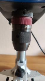 Marca Scheppach, centratura laser, indicatore profondità di foratura, due velocità meccaniche più regolazione elettronica, morsetto e squadra, indicatore n' giri al minuto . poco usato, vendo per inutilizzo