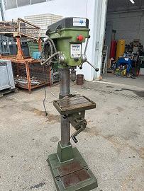 Trapano a colonna Serrmac Rag 20/22 Doppia velocità e luce sul mandrino. Piano da una parte e morsa dall'altra.