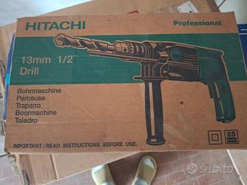 Trapano Hitachi da 13mm, professionale. Robusto e affidabile, ideale per lavori di muratura e perforazioni. Dotato di meccanismo a percussione e mandrino di qualità. In ottime condizioni, perfettamente funzionante.