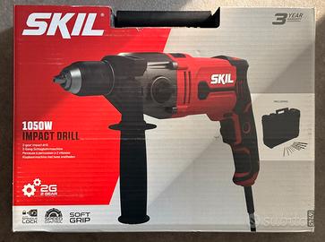 Trapano a percussione a 2 velocità SKIL 6745per forare in modo rapido e agevole , motore molto potente da 1050 W è ideale per la foratura di mattoni e muratura, nonché per praticare fori in legno, metallo, ceramica e plastica. Dotato di un mandrino autoserrante in metallo con ghiera singola da 13 mm e blocco per evitare che le punte scivolino durante il lavoro. Il blocco automatico alberino consente una facile sostituzione degli accessori. Design ergonomico con impugnatura morbida garantisce maggiore comfort durante il lavoro. Lo SKIL 6745 GA viene fornito in una valigetta compatta con un set di 5 punte per foratura nel legno, 5 punte per foratura nella muratura, una impugnatura laterale e un'asta di profondità. NUOVO DISPONIBILITA’ UN SOLO PEZZO