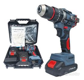 trapano avvitatore a percussione, motore Brushless di alta qualità e efficienza. Nella sua valigetta per il trasporto al suo interno include: trapano , 2 batterie al litio da 3000 mha cadauna, caricabatterie, 14 punte di qui , 4 per bulloni , 6 per viti , 4 per foratura, 1 paio di guanti. Il trapano ha il motore Brushless di alta qualità , efficienza e longevità. 1 anno di garanzia sul motore. Nuovo.