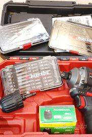 Tutto nuovo mai usato, linea Parkside Performance 12v, completo di valigetta 1 batteria e caricabatterie, mandrillo aggiuntivo,2 kit di punte,1 kit di inserti e portainserti.