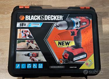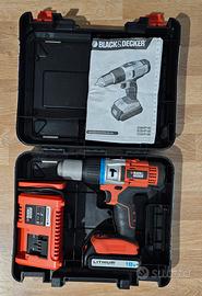 Trapano avvitatore a percussione BLACK DECKER 18V, al Litio con valigetta.