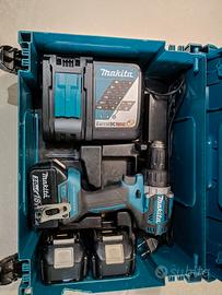 Trapano avvitatore a percussione 18V ideale per applicazioni di avvitatura e foratura con o senza l'utilizzo della percussione, come nuovo (utilizzato solo per qualche foro). Possibilità di impostare due livelli di potenza. Coppia di serraggio massima 64 Nm, fino a 13mm. Uno strumento versatile per installatori, costruttori e personale di manutenzione. Luce LED integrata. Fornito con 3 batterie 3,0Ah BL1830B (poco utilizzate ed in ottimo stato) e caricabatterie rapido 22' DC18RC (completamente nuovo), fornito con valigetta MAKPAC tipo 2 (821550-0).