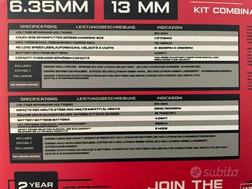 KIT 2 IN 1 Trapano Avvitatore + Avvitatore a Impulsi 2 Batterie 21V 4.0Ah CON CARICABATTERIE E CUSTODIA