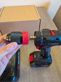Avvitatore e tassellatore con mandrino in acciaio rimovibile per altri accessori. Accessori visibili in foto con propri codici per ordinarli separatamente.