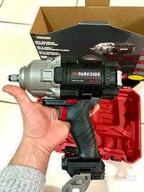 PARKSIDE PERFORMANCE Avvitatore a percussione 20v. (NUOVO MAI USATO) Smontagomme Avvitatore ad impulsi senza filo Ricaricabile PASSP 20-Li C4 - 20V 4Ah - NUOVA VERSIONE 2026 - Coppia massima di avviamento: 1898 Nm Coppia 130/400/1356 Nm Numero di colpi: 0-500 / 0-1500 / 0-1900 min-1 Numero di giri a vuoto: 0-600 / 0-1250 / 0-1550 min- Capacità: fino a M33 Alloggiamento accessori: quadrato esterno da 1/2 Accessori in dotazione: 3 chiavi (1/2 impugnatura: 17 / 19 / 21 mm), 1 accessorio (da 1/2 a 3/4)