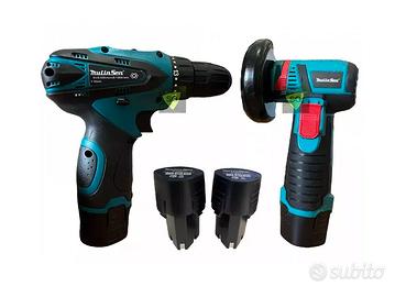 KIT TRAPANO AVVITATORE con luce led + MINI FLEX SMERIGLIATRICE + 2 BATTERIE + ACCESSORI