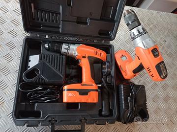Causa inutilizzo vendo COPPIA di trapani a batteria , entrambi funzionanti , molto robusti , uno completo di valigetta . Vengono forniti due caricabatterie e due batterie da 18V 3000 mA . Sono dotati di doppia velocità con variatore , percussore , frizione regolabile , peso circa 2,5 Kg. cadauno . Qualsiasi prova , vendo con la formula del visto e piaciuto . IL prezzo è comprensivo dei due attrezzi e dei rispettivi accessori in foto.