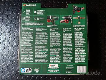 Trapano avvitatore Parkside ricaricabile 20V con funzione percussione nuovo completo di valigetta, maniglia aggiuntiva e due punte PZ.