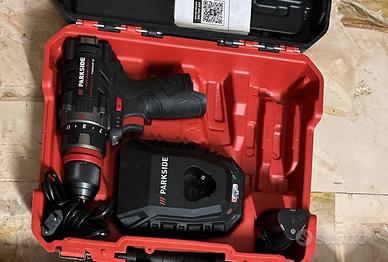 Vendo trapano avvitatore a batteria Parkside 12V serie X12V Team, completo di valigetta rigida, caricabatterie e batteria al litio come da foto.
