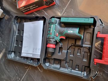 Trapano avvitatore Parkside (Lidl), completamente nuovo e completo di batteria ed accessori. Tutto ancora imballato nelle confezioni originali (aperte solo per fare le foto). Il trapano include la valigetta :)