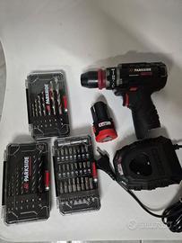 SET COMPLETO trapano /avvitatore PARKSIDE PERFORMANCE 12V con mandrino rimovibile a innesto rapido per duplice funzione (avvitare e forare). Nuovo, mai usato, nella confezione originale e con scontrino per 5 ANNI GARZANZIA UFFICIALE. Completo di : - n.1 BATTERIA da 12V - n.1 CARICABATTERIE - box con 7 punte per legno - box con 7 punte per metallo - box con 25 bit per avvitare - pratica e compatta valigetta in tessuto rigido Compreso di una (1) batteria e un (1) caricabatterie PRONTO ALL'USO. Indispensabile da tenere in casa. NON TRATTABILE- NO PERDIGIORNO