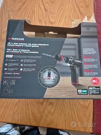 vendo trapano avvitatore parkside performance con kit completo 2 batterie 12 v caricabatterie originale set punte e inserti valigetta inclusa perfettamente funzionante usato poco. prezzo 35