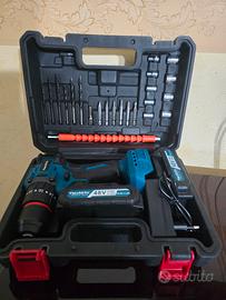 Trapano avvitatore Tmakota professionale, modello TM-6619, con tecnologia Li-Ion. - 2 Batteri2 Tmakota 48V. - Motore brushless. - Include accessori per diverse applicazioni. - Valigetta per trasporto.