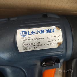 Trapano avvitatore della Lenoir a batteria. Modello LE171. Batterie disponibili 2 ma sono da sostituire in quanto non ricaricate per tanto tempo. Perfettamente funzionante l'avvitatore. Completo di alimentazione e base di ricarica