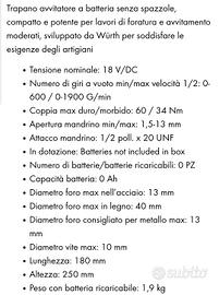 Vendo trapano avvitatore Wurth abs 18 V serie compact m-cube nuovo, mai utilizzato. ( SOLO CORPO MACCHINA ). Spedizione disponibile.