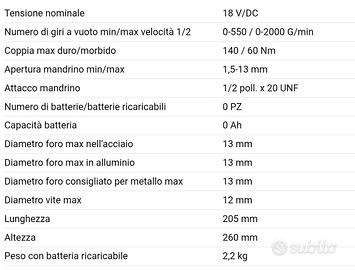 Vendo trapano avvitatore Wurth 18 V Power ( sollo corpo macchina ) molto potente e maneggevole con una coppia di serraggio di ben 140 Nm in ottime condizioni.. Spedizione disponibile.
