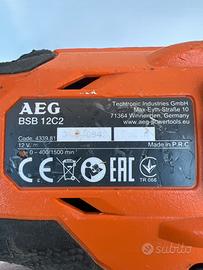 Trapano AEG a litio da 12 volte con batteria da 4ah caricabatterie molteplici funzione tra cui percussione, funzione avvitatore e punte mandrino auto serrante tutto perfettamente funzionante valore nuovo oltre 250 € cosi composto attenzione le gomme di protezione esterne del Trapano sono un po’ usurate, ma niente di importante il trapano è perfetto funziona perfettamente