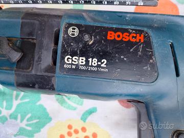 TRAPANO BOSCH A PERCUSSIONE, MOD. GSB 18-2, 600 WATT, 700/2100 1/MINUTI, BEN TENUTO E PERFETTAMENTE FUNZIONANTE.CUSTODIA PLASTICA NON ORIGINALE .