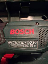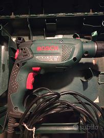 vendo trapano bosch, colore verde e nero, potenza max 680w, numero di giri a vuoto 50-3000 giri/minuto. diametro foto massimo 13mm muro, 14mm ferro, 30mm legno. 230V. marcato CE. mandrino autoserrante, regolatore di velocità, invertitore di giri, funzione martello, pulsante di blocco della velocità, filo elettrico allungato di circa metri 2. dimensioni approssimative in centimetri: 38 x 29 x 10. completo di valigetta in plastica, manico e misuratore di profondità. ottimamente tenuto, perfettamente funzionante ed utilizzato pochissimo. euro 50