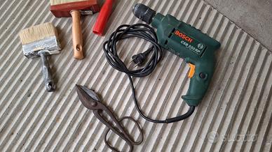come da foto trapano Bosch funzionante, cesoia affilata a retifica affilata come rasoio e set pennelli rullo, possibilità di spedizione
