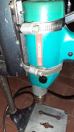 Trapano Bosch con cambio a 2 velocità meccanico. Mandrino 10 mm con serraggio a chiave. Colonna alta 55 cm per forare in squadro con regolazione in altezza e arresto di profondità. Usato poco. Ritiro a mano in zona.