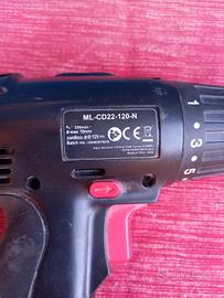 Vendo dalla mia attrezzatura privata ottimo trapano a batteria ML-CD22-120-N tenuto bene e perfettamente funzionante completo di batteria e caricabatteria.