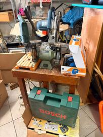 Trapani, tavolo e altri utensili da lavoro cedesi per esubero materiale utilizzato da privato quindi ottime condizioni vendesi anche in blocco Ps : Elenco del materiale : Troncatrice laser, Sega circolare, Levigatrice per legno ,Fresatrice ,Pialla,Arrotatore piu disco in pietra rotante e vari trapani normale e a colonna No perditempo tutto perfettamente funzionante .
