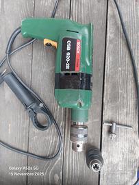 Trapano elettrico Boch, modello 620 2E, dotato di percussore, con selettore per due velocità. Dotatto di doppio mandrino con relativa chiave di serraggio. Disponibile anche valigetta, libretto di istruzione e manutenzione e relativa manopola per utilizzo con due mani. Potenza 620 W, alimentazione tensione di rete 220 volt.