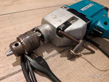 Trapano elettrico con mandrino 0,5-10 mm METABO tipo 066/2. Il trapano è stato molto utilizzato, ma funziona ancora perfettamente. Presenta segni di utilizzo come da foto. È presente la chiave per stringere le punte.