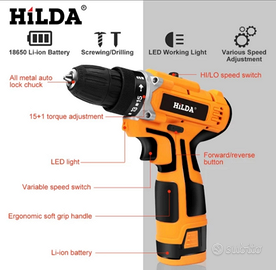 Vendo trapano-avvitatore HILDA, da 16.8v, completo di accessori e pratica valigetta per il trasporto, nuovo mai usato.