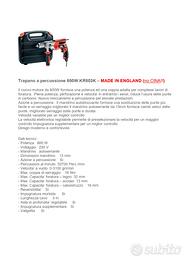 Vendo trapano MODELLO KR803 come da descrizione . Anche se datato, praticamente nuovo, usati solo 2 volte. Linea professionale made in England (NO CINA). Possibile anche spedizione